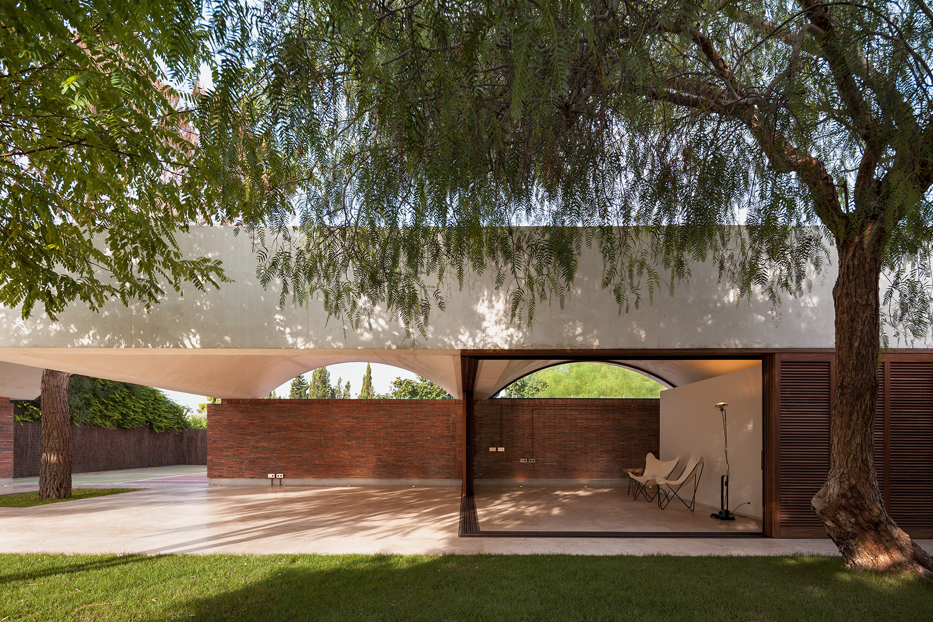 La base conceptual de este proyecto se basa en la observación y la comprensión de su entorno. Tuvimos en cuenta el clima (cálido y húmedo), las necesidades de los propietarios y las tradiciones constructivas de la zona. La mayoría de casas en las afueras de Elche, construidas durante los años setenta y ochenta, tienen un aspecto muy similar entre sí. Lo característico de estas construcciones es la presencia de un porche tradicional, una especie de terraza cubierta que actúa como principal zona común exterior. El interior de la casa responde a un modo de habitar caduco: pasillos inútiles, ventilación deficiente, espacios comunes completamente cerrados al exterior. Esta tipología de casa es totalmente coherente con la tradición constructiva del lugar, pero ignora su contexto por completo.