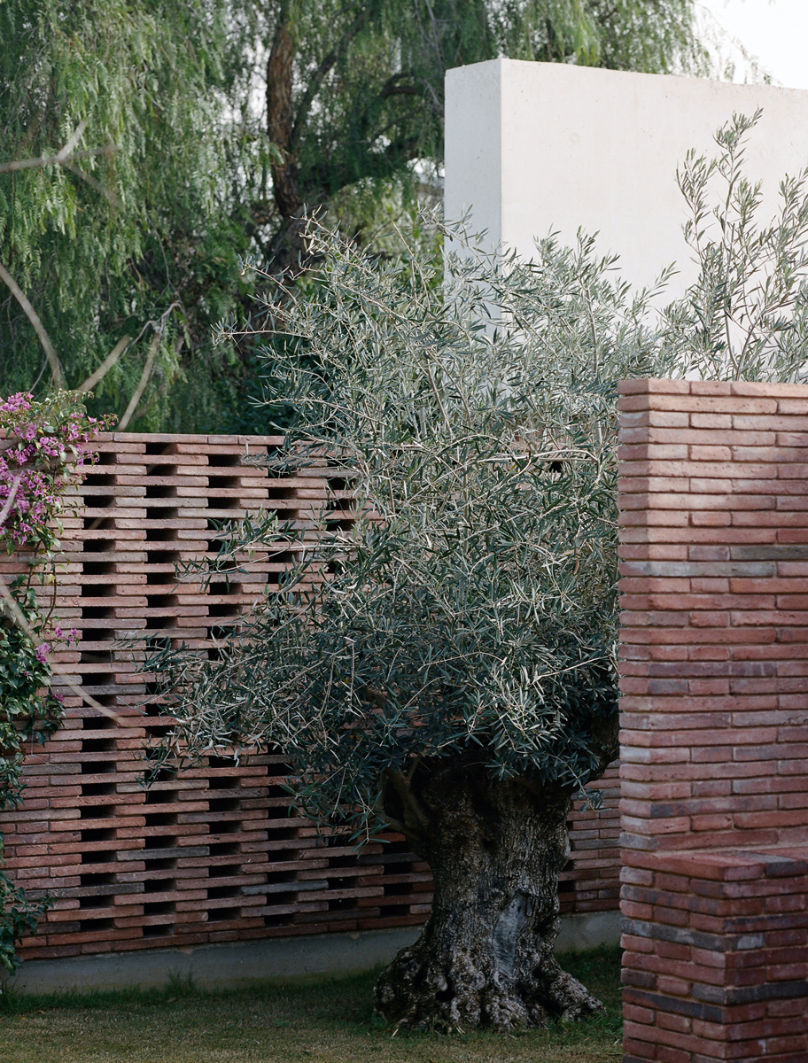Para crear sensación de movimiento y ligereza en el espacio, agregamos un techo abovedado con amplias ondulaciones. La abertura resultante entre la pared de ladrillo y el techo abovedado sirve como sistema de ventilación natural, al mismo tiempo que permite la entrada de luz proyectándola a través del porche y los dormitorios*. Las bóvedas se apoyan sobre muros construidos con unos ladrillos especiales que hicimos con ceramistas locales. Realizamos un estudio sobre las composiciones de este material modesto y tradicional, para crear un ladrillo plano hecho a medida que se coloca siguiendo el método flamenco de mampostería, donde los ladrillos se sitúan en líneas de cuatro y los bordes nunca se tocan. El material y la estructura de CASA IV contrasta con la original sin eclipsarla.