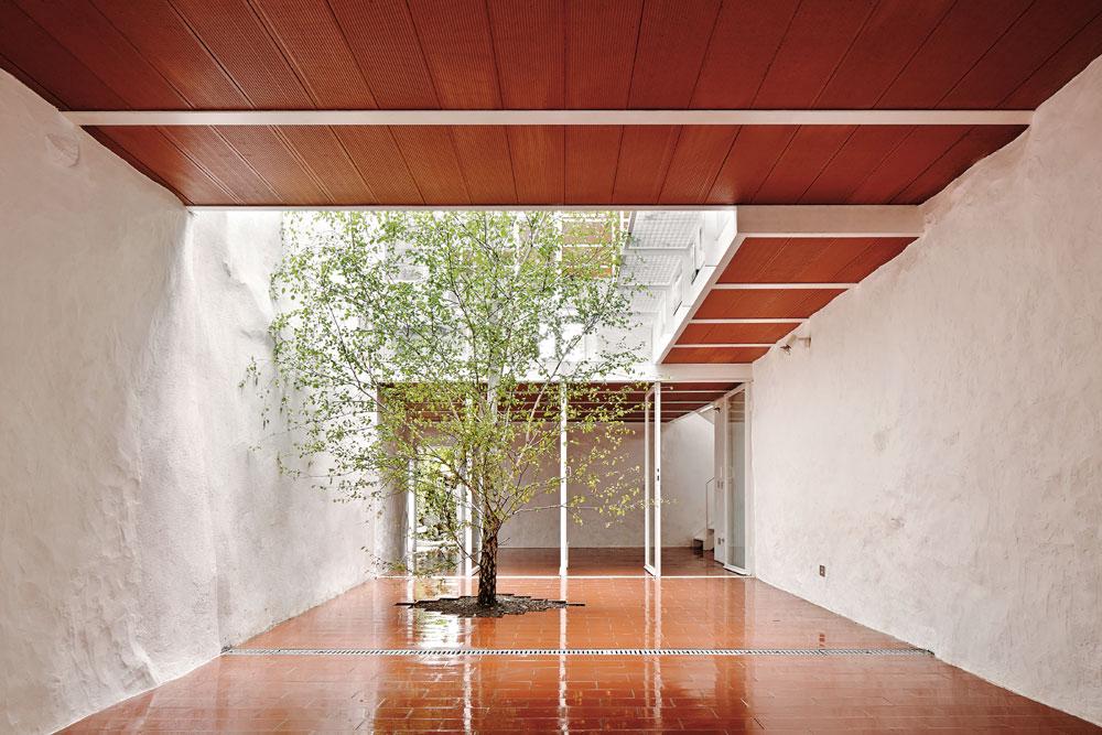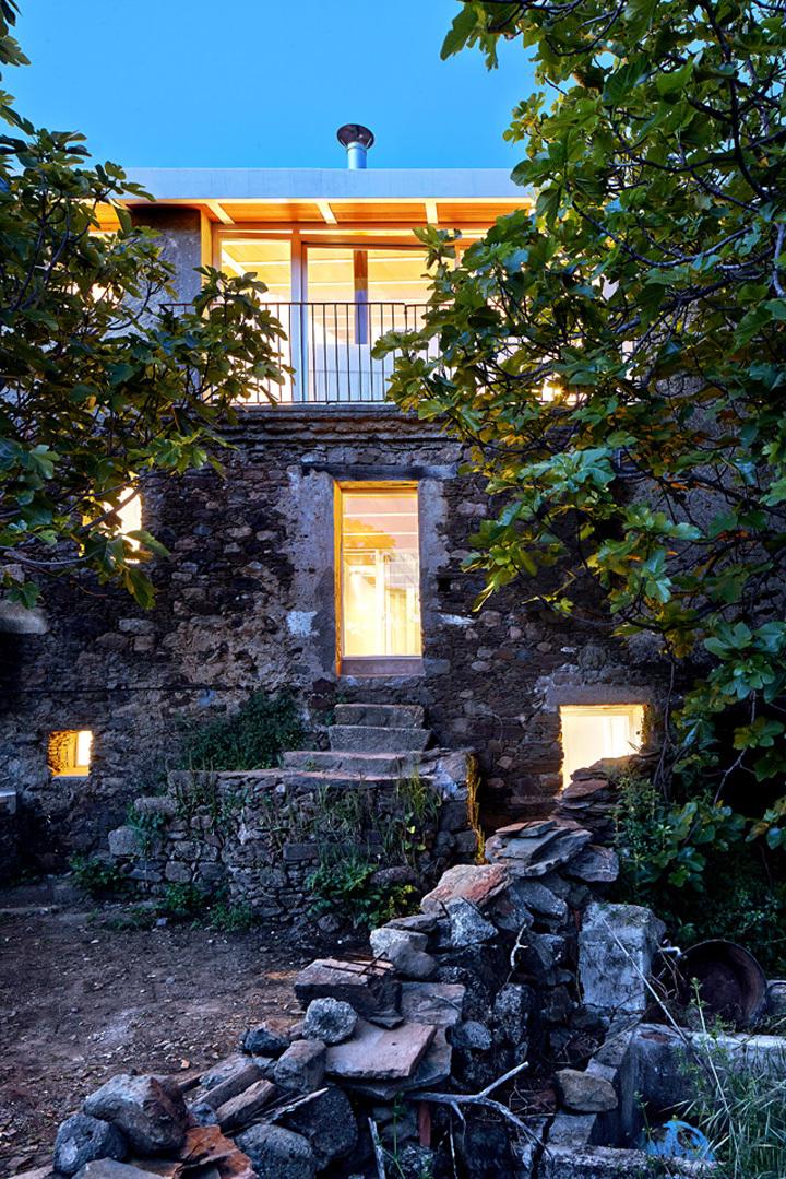 An old village house is reorganised around a patio that separates rooms from common areas.