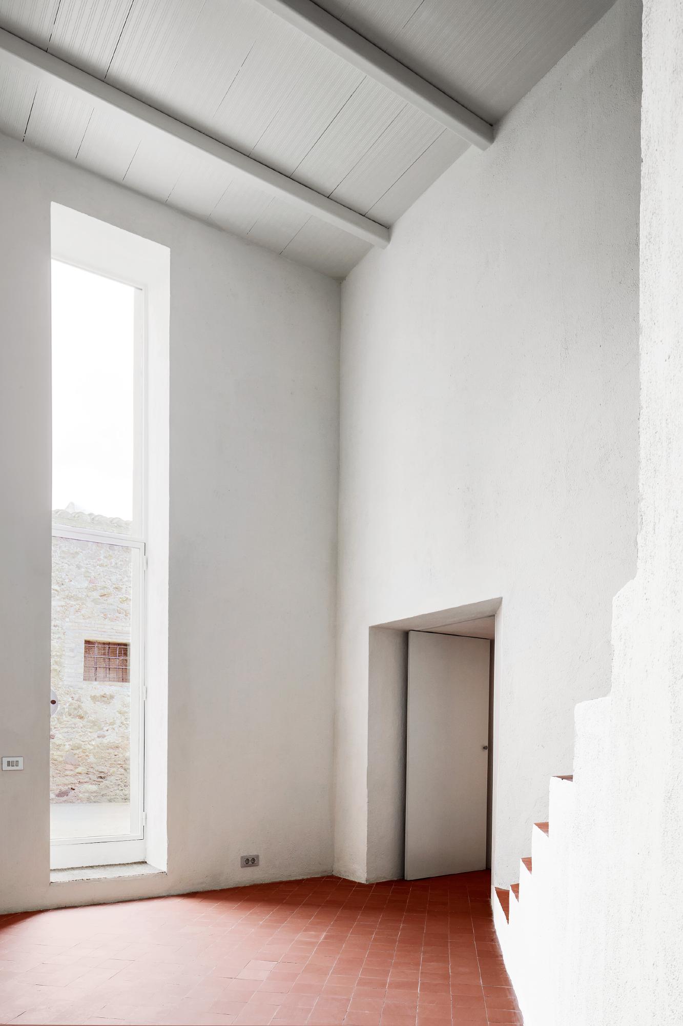 The project consists in the refurbishment of a house between party walls located in La Tallada, a genuine small village of Empordà. The volume of the house supposed to be rehabilitated had undergone several changes and extensions which contributed to its peculiar aspect of a turret. The project has sought to strengthen this particular verticality of the house that we found extremely attractive among the general environment. From the entrance begins the ascent through a series of stairs that give access to the different spaces, until arriving to the swimming pool that is the highest point of the house. Some of the original openings of the upper volume had an elongated proportion and ended in semicircular arches, a really common typology in many houses of the town. It was decided to interpret this pattern and repeat it throughout the upper floor, applying it on doors , windows and passageways between the different rooms as well.The main facade also participates in this language, exteriorising through a large vertical gap the vertical sequence of spaces that are stacked inside the house.
