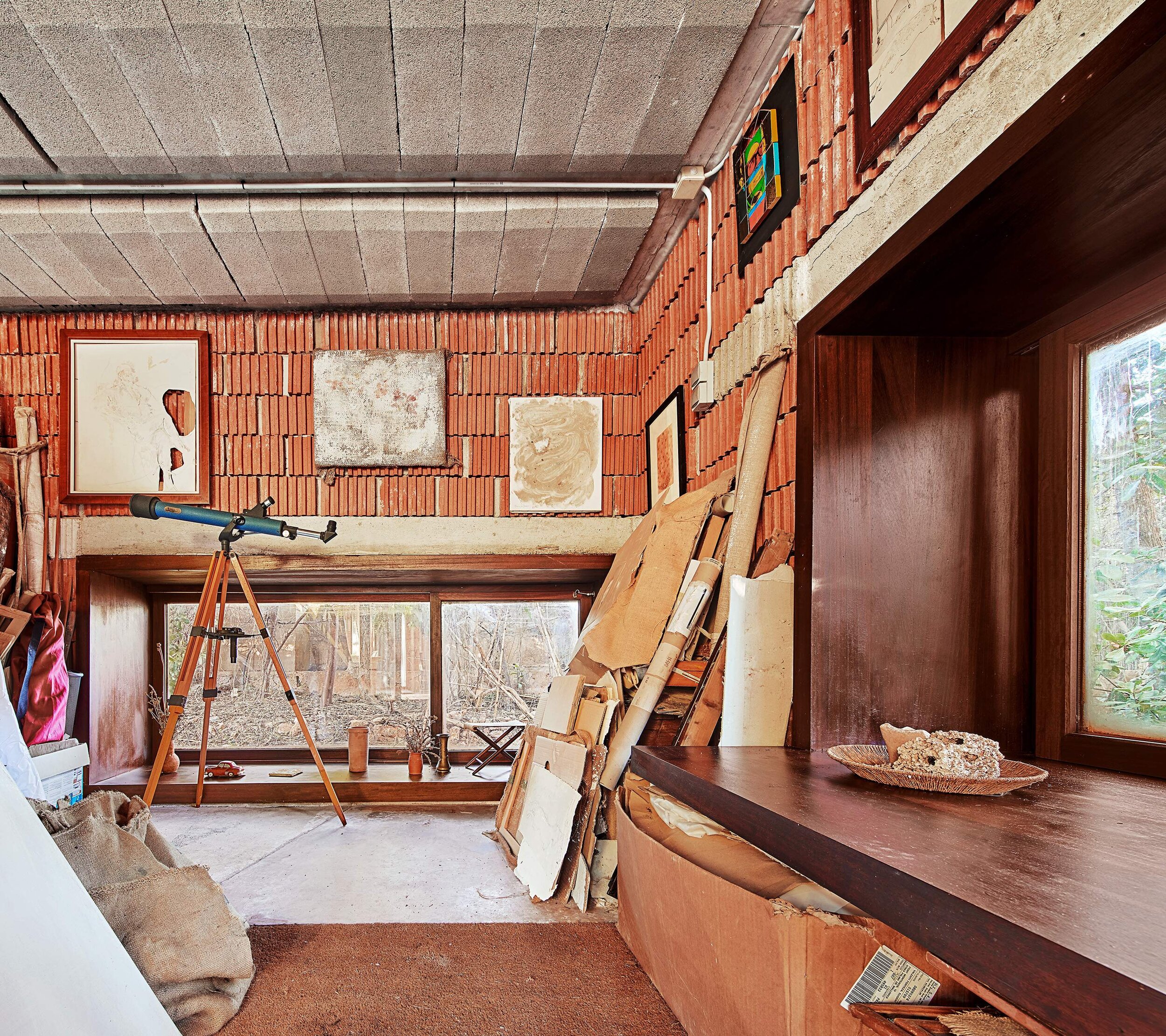 The plot indicates where the new study should be placed. The best place is near the wall of the cypresses facing north which would protect the building from the wind. At the same time the new studio should leave as much space as possible on the south side for gardening. Finally but not least importantly, the location of the studio should allow for the free circulation between the well and the main house to get water. The well becomes the center of the new workshop. The two volumes are placed on the two sides of the well creating a secluded courtyard between the house and the orchard. Two boxes are designed. In the bigger the painter will work; it is lighter, has a higher ceiling and incorporates the “windows-furniture” to be used by the painter. The smallest one will be used for storage and exposition of the works. There are two ways of construction: ceramic box and wooden box.