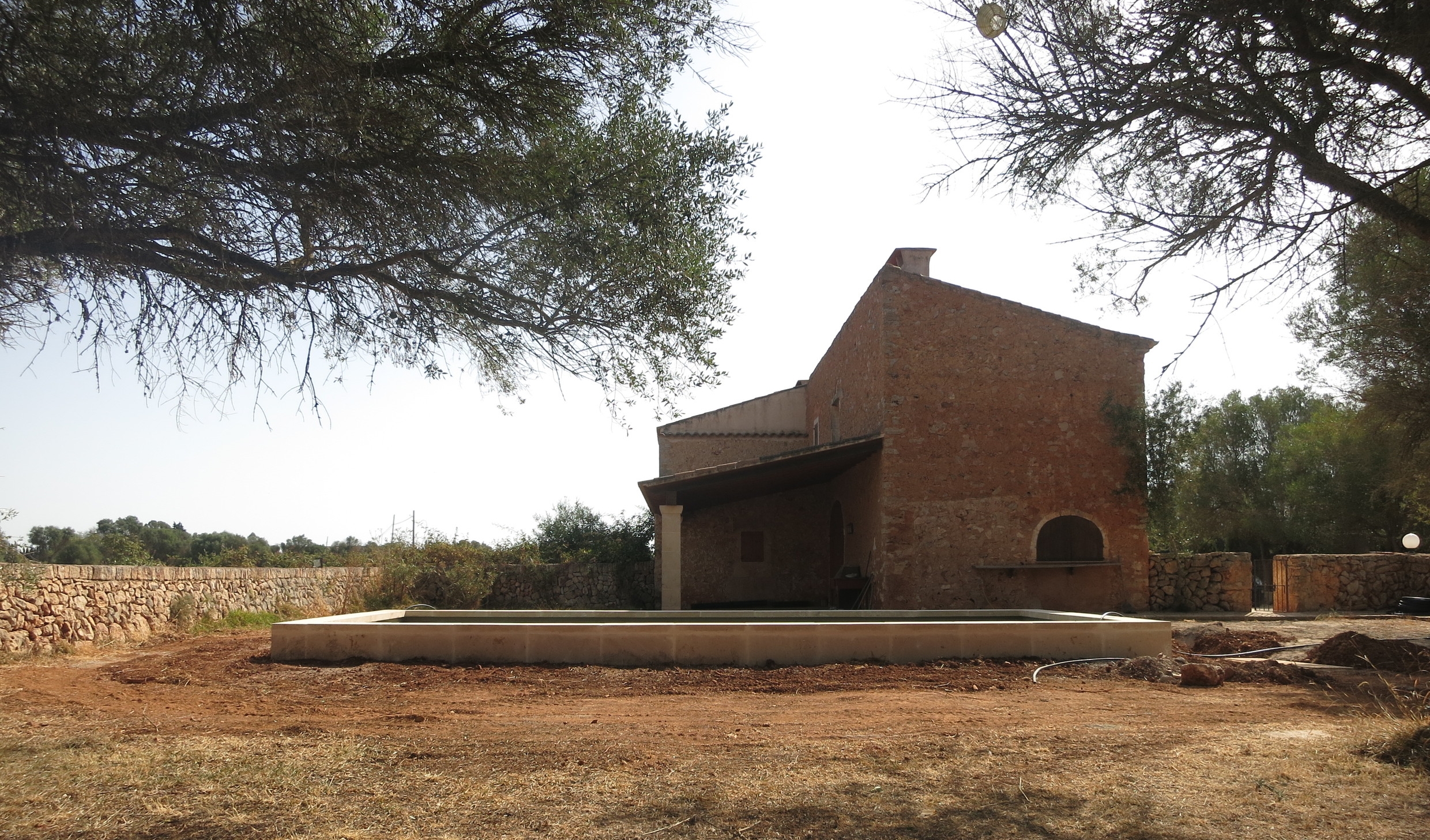 El proyecto consiste en la construcción de una piscina situada en un medio eminentemente rural. En este territorio, como en el resto de la isla, existe una tipología agrícola de almacenamiento de agua: el “safareig”. Estos depósitos eran construidos por los campesinos para almacenar agua durante todo el año, y hacerla servir en los momentos necesarios para regar sus campos. Estas construcciones emergen del plano del suelo y están construidas con piedra del entorno, habitualmente con piedra calcárea o de marés según la disponibilidad del material en la zona.