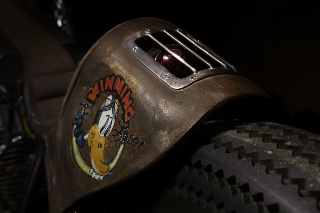 Everybody thinks that the Winning Loser was thought as an exercise, a design study, a motorcycle not meant to be ridden… but as usual, everybody is wrong. Our little Yamaha 250 gets ridden every now & then by Lazlo, who is one of the chosen few with the talent and balls to beat the tricks out of this untamed mini-gladiator. Obviously with a 3 liter gas range you cannot go far, but every time there is an opportunity to take the metal chick for a spin, she performs in all her glory.